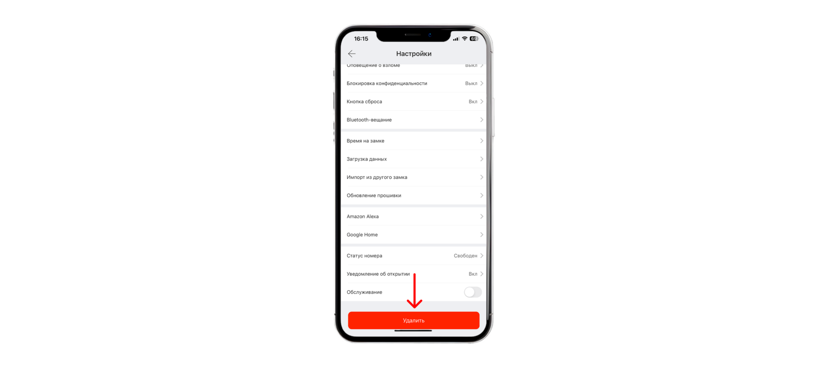 Кнопка «Удалить» - сброс замка до заводских настроек, для удаления нужно подтвердить удаление и ввести пароль от аккаунта TTLock.