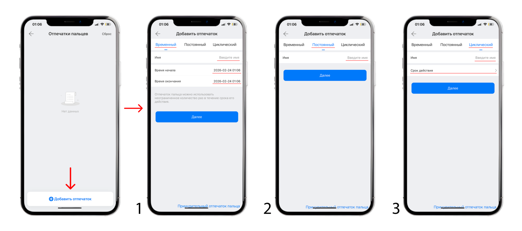 4) Добовление отпечатков пальца ( НУЖНО НАХОДИТЬСЯ ВБЛИЗИ ЗАМКА )