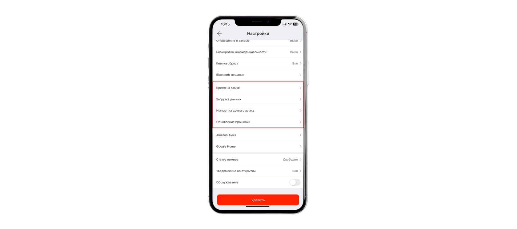 Внимание: функция работает только если замко подключен к интернету!