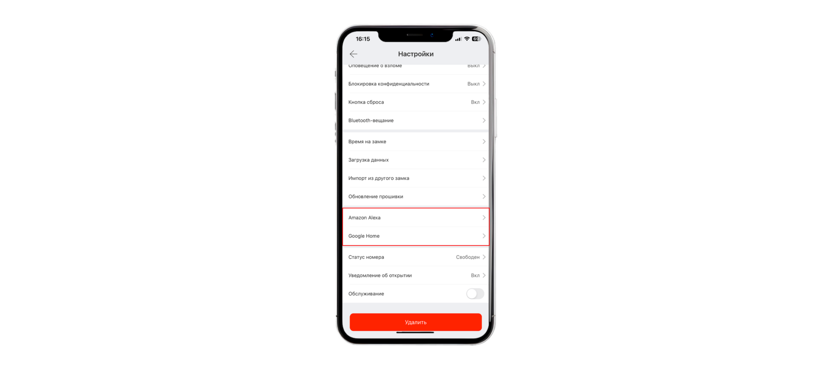 Интреграция замка с «Amazon Alexa» и «Google Home».
