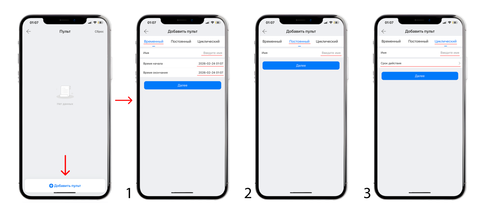 5) Добавление пульта управления ( пульт приобретается отдельно )